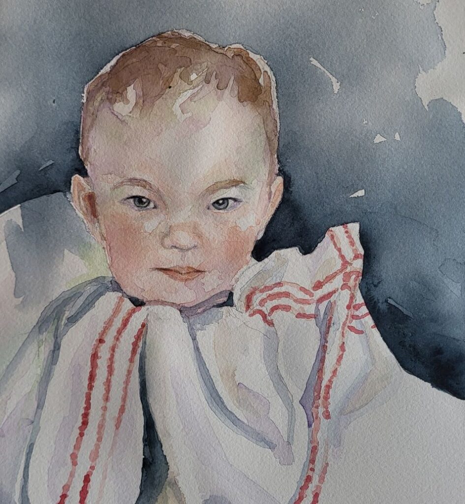 Jag har gjort en liten akvarell, mest på kul, för att inte ”glömma bort” hur man gör. Det är en målning utifrån ett foto av en person som delar sitt liv i sociala medier. Personen inspirerar mig på sättet hon valt att leva ett enklare liv, småskaligt, återbruk, secondhand och att odla och laga det hon och familjen äter. Vi fick kontakt och hon tyckte att det skulle vara kul att få se akvarellen. Nu är den klar och jag ska skicka den till henne i veckan som kommer (som ett tack för att hon får mig att le!)