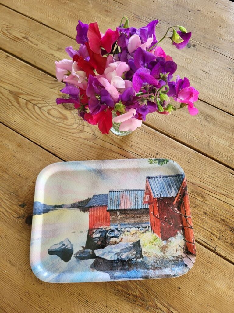 Du ser även en mindre modell av samma bricka. 19×27 cm. Pris 275 kr/st + ev frakt. Akvarell Fins konst