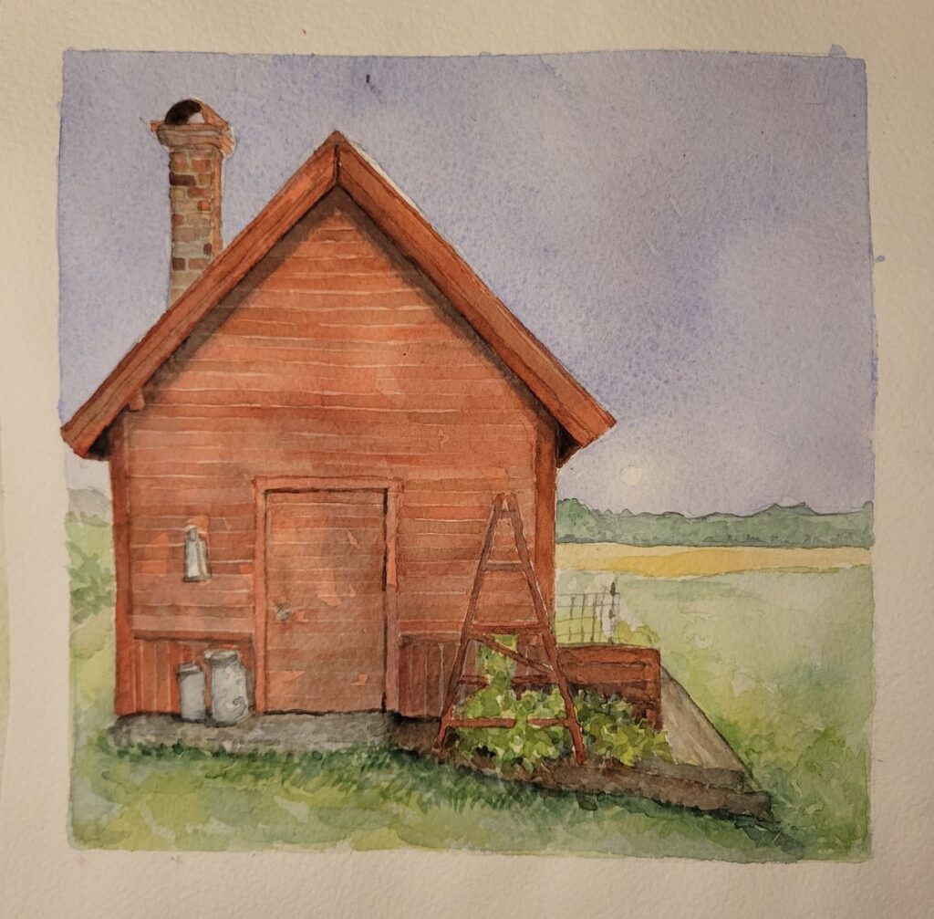 Nu när jag skriver är det snart jul. Jag hoppas att vi alla får känna lite av den gemenskap som de som gick före skapade tillsammans. God Jul! Akvarell 55×70 cm, PRIVAT